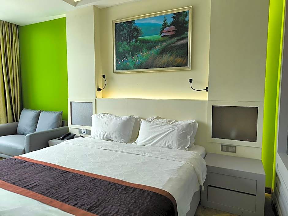 This larger air-conditioned contemporary-style deluxe room has a seating area fitted with a flat-screen satellite TV, sofa and a desk. The private bathroom includes a bathtub or shower facilities and a hairdryer.